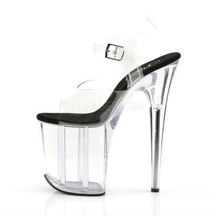 20cm ヒール 厚底 キャバ サンダル Pleaser プリーザー 大きいサイズ 小さいサイズ ハイヒール ピンヒール クリアヒール ポールダンス アンクル ストラップ 厚底サンダル クリア 黒 ブラック レディース メンズ 20センチ ヒール フラミンゴ FLAMINGO-808 FLAM808/C-B/C 取寄