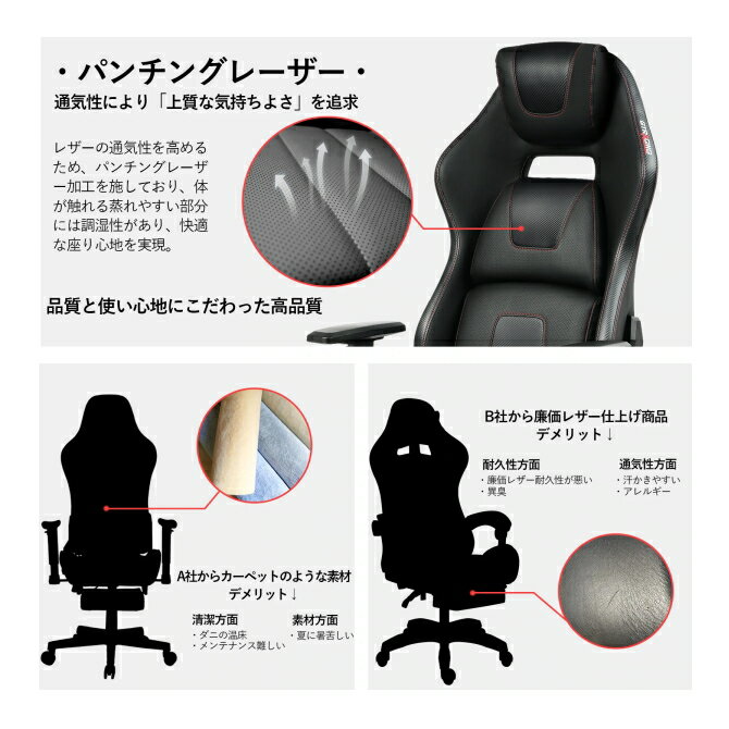 ●チェア全体にパンチングレザーを採用していますので通気性抜群。