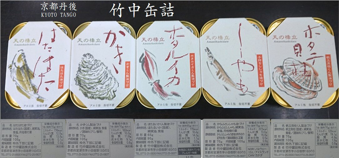 他、国産カキ、国産ほたるいか、国産帆立貝柱、国産はたはたの缶詰、京都府海洋高校が開発した鯖の缶詰、人気の雲丹のり、話題のかにみそバーニャカウダ、たまごかけごはんの素、鯖のへしこふりかけなど、いろいろなものを詰め合わせにしてみました。