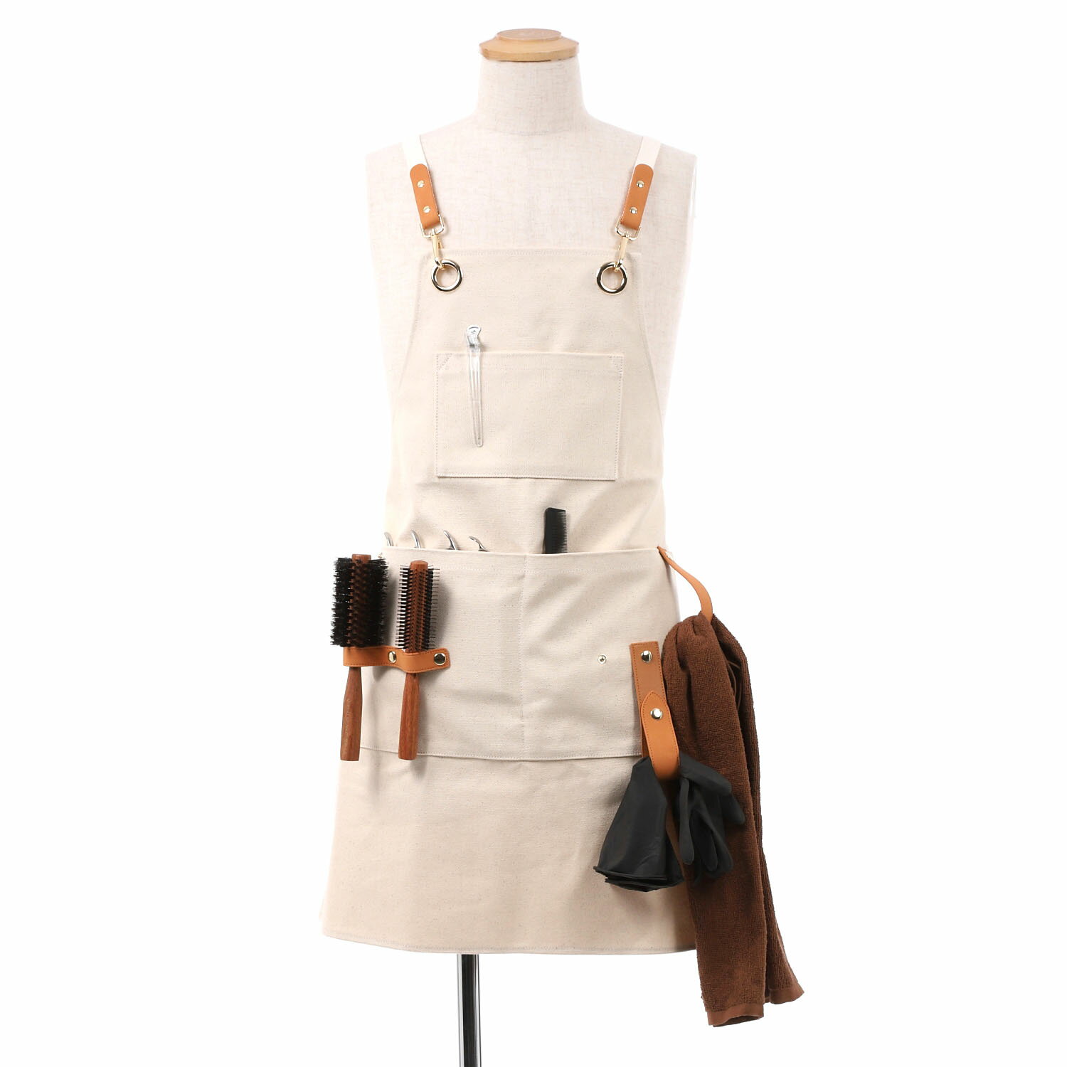 ■着丈74cm / 身幅65cm / 肩紐148cm(金具含む) ■フリーサイズ(ユニセックス) ■本体・肩紐/綿100% 付属品/PUレザー(合成皮革) ■4丁入 ※ホルダーは左右のポケットどちらにも付け替え可能 ■カラー アイボリー ■ゴールド金具 ※色やロットによってサイズに若干の差異がある場合がございます。
