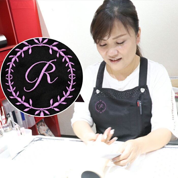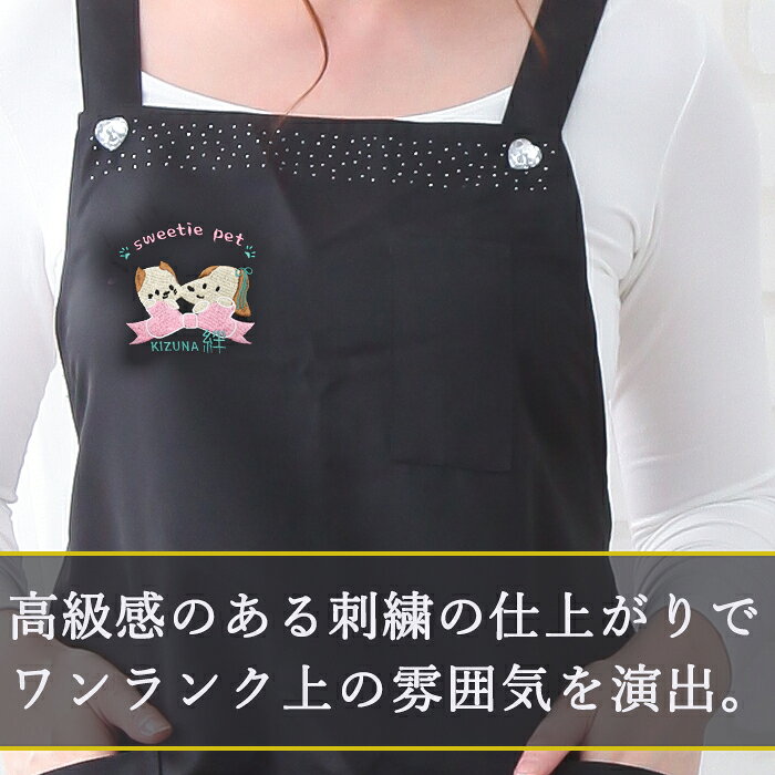 ロゴ 刺繍 エプロン 美容師 ネーム オシャレ 撥水 おしゃれ レディース カフェ 前結び ボタン付き ギフト バッククロス ポリエステル100% 可愛い 大人 無地 黒 ブラック エレガント シンプル ペットサロン ネイルサロン logo